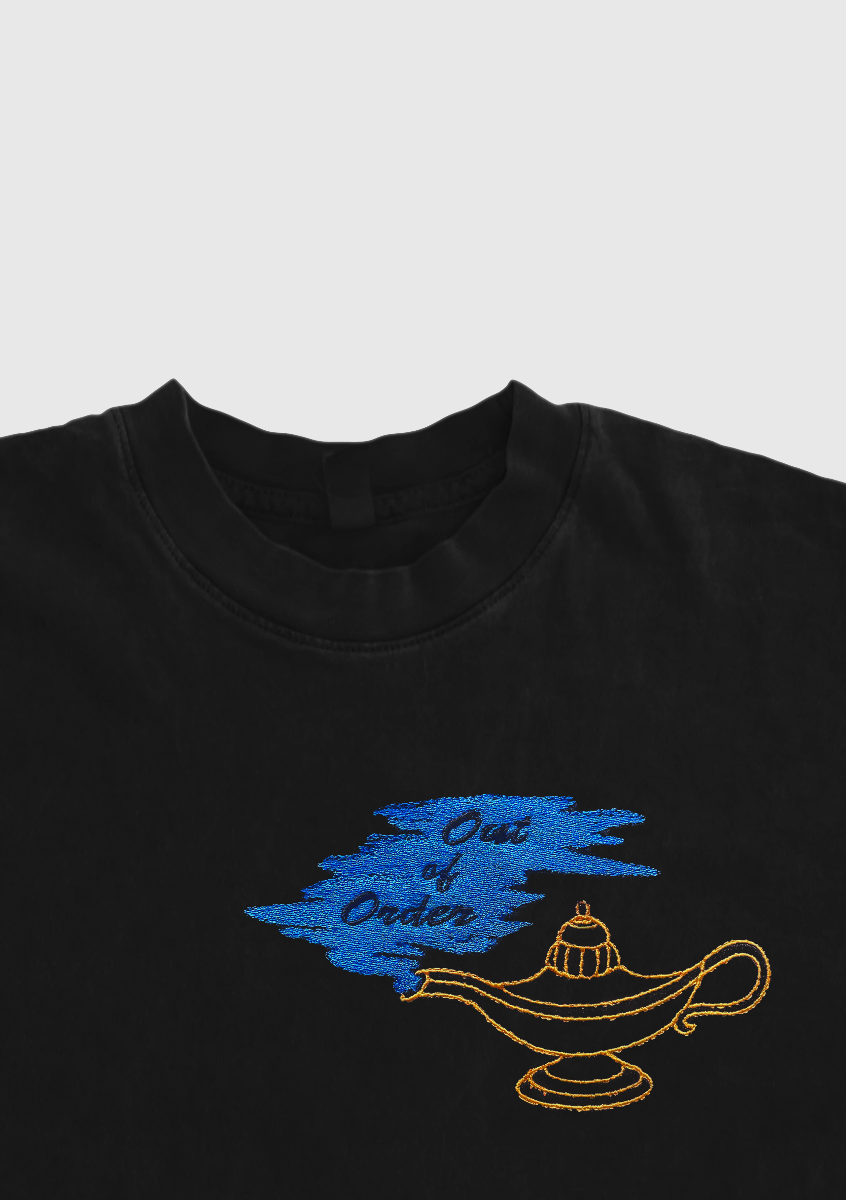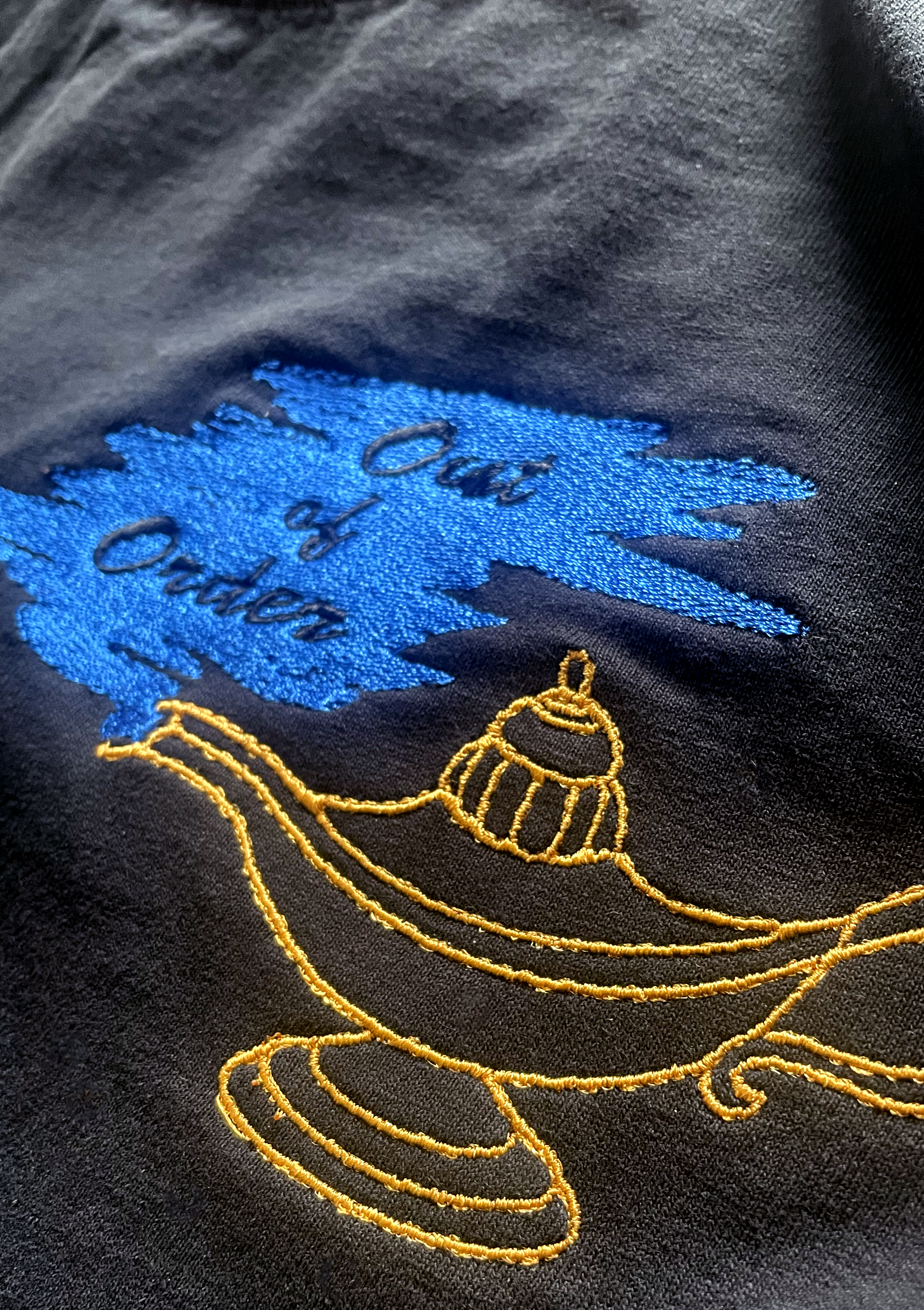 Embroidered design, pre-shrunk, heavy/sturdy feeling, 100% cotton, black.