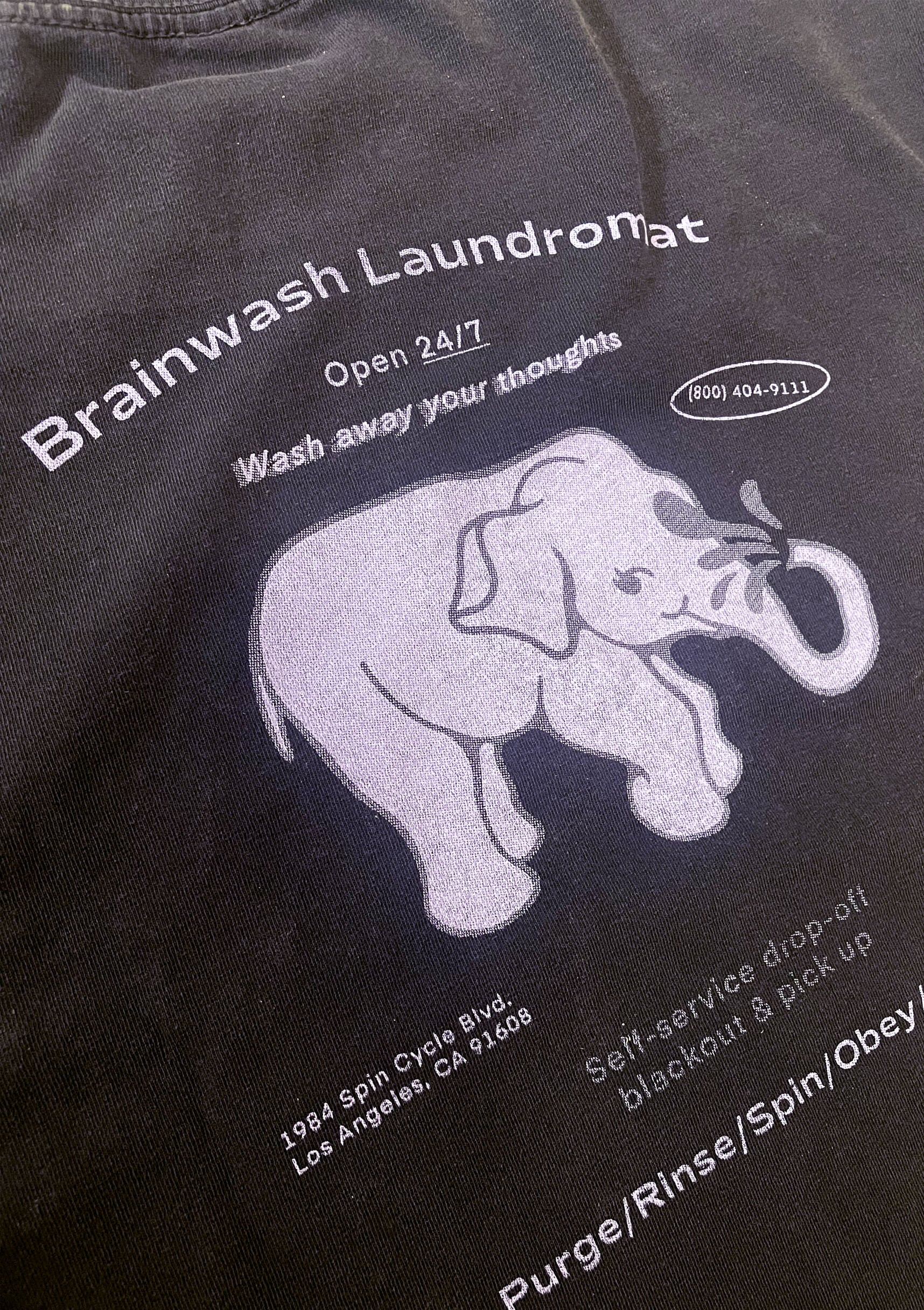 Welcome to Brainwash Laundromat: where dirty clothes and free thought both go to disappear. Drop off your laundry, pick up a fresh perspective (programmed for your convenience). Featuring spin cycles, fabric softener, and just the right amount of subliminal messaging.